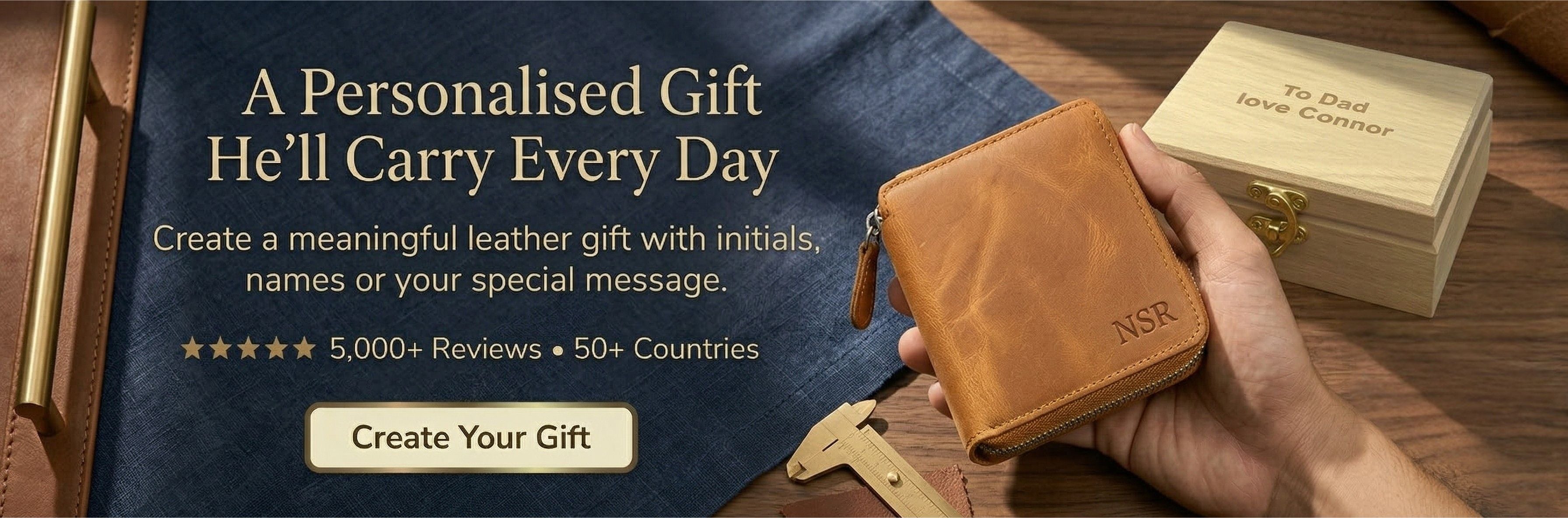 Personalised Leather Wallet for Men – Premium Quality Christmas Gift for Him, Boxed