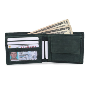 A sophisticated green leather wallet that combines craftsmanship, organisation, and RFID security — perfect for gifting or elevating your own everyday carry.