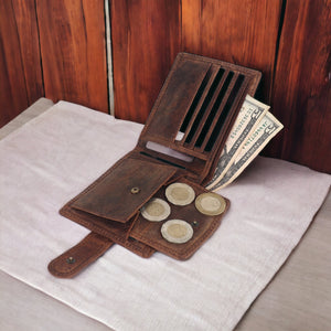Crafted from high-quality pure leather, this wallet exudes a rustic charm that only grows richer and more characterful with age.