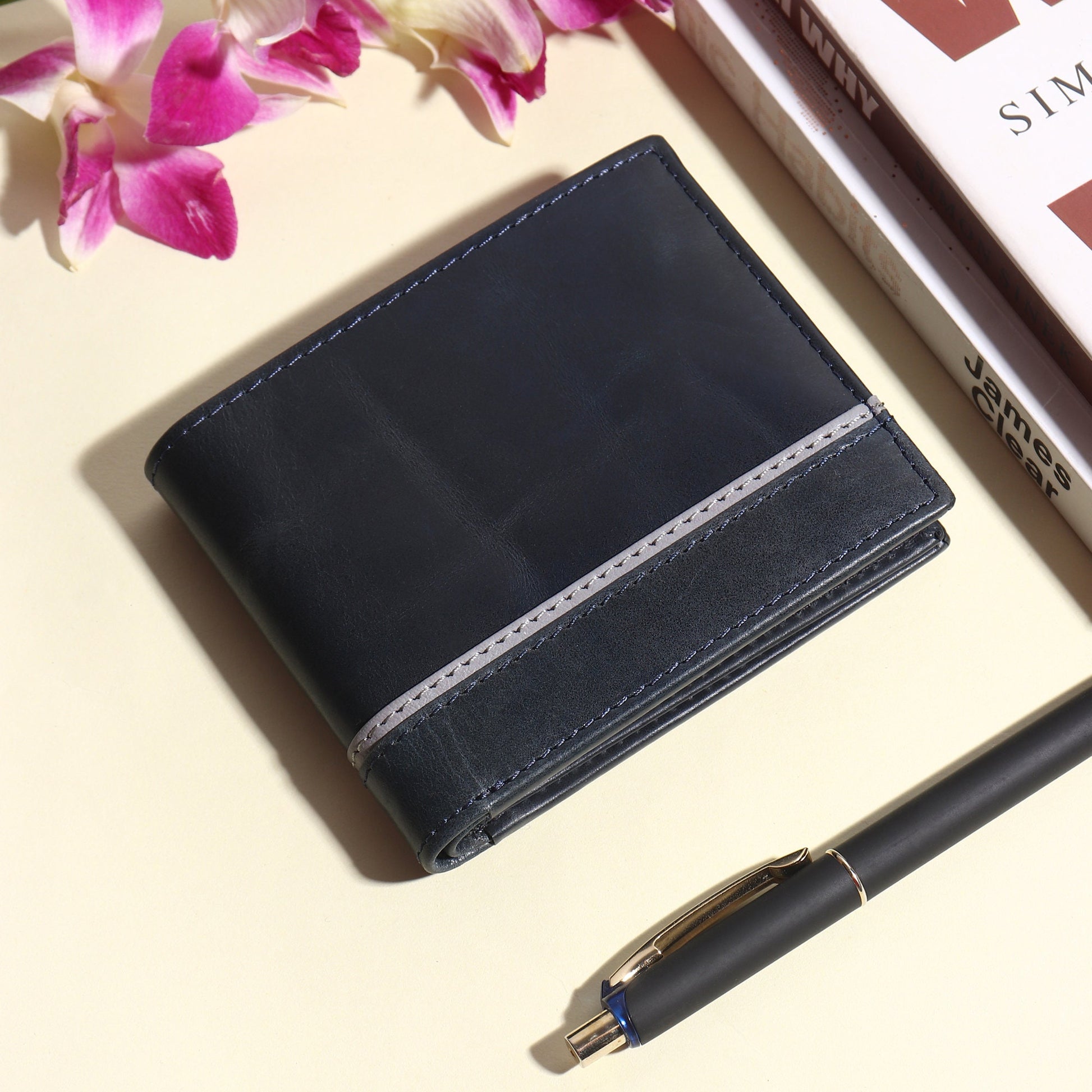 Handmade Navy Blue Real Leather Wallet for Men | Personalised Gift For Dad | Christmas Gift for Son | Birthday, Anniversary Gift For Men