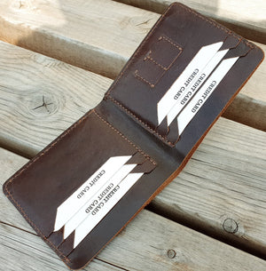 This minimalist bifold Wallet/card holder is made of genuine full grain leather which is perfect for your credit card and cash holding needs.