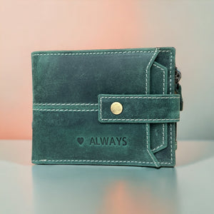 A beautifully handcrafted genuine leather wallet designed for both men and women. Available in 8 stunning colours, this slim yet spacious wallet blends elegance, practicality, and personalisation — perfect for Christmas, birthdays, or gifts for Dad.