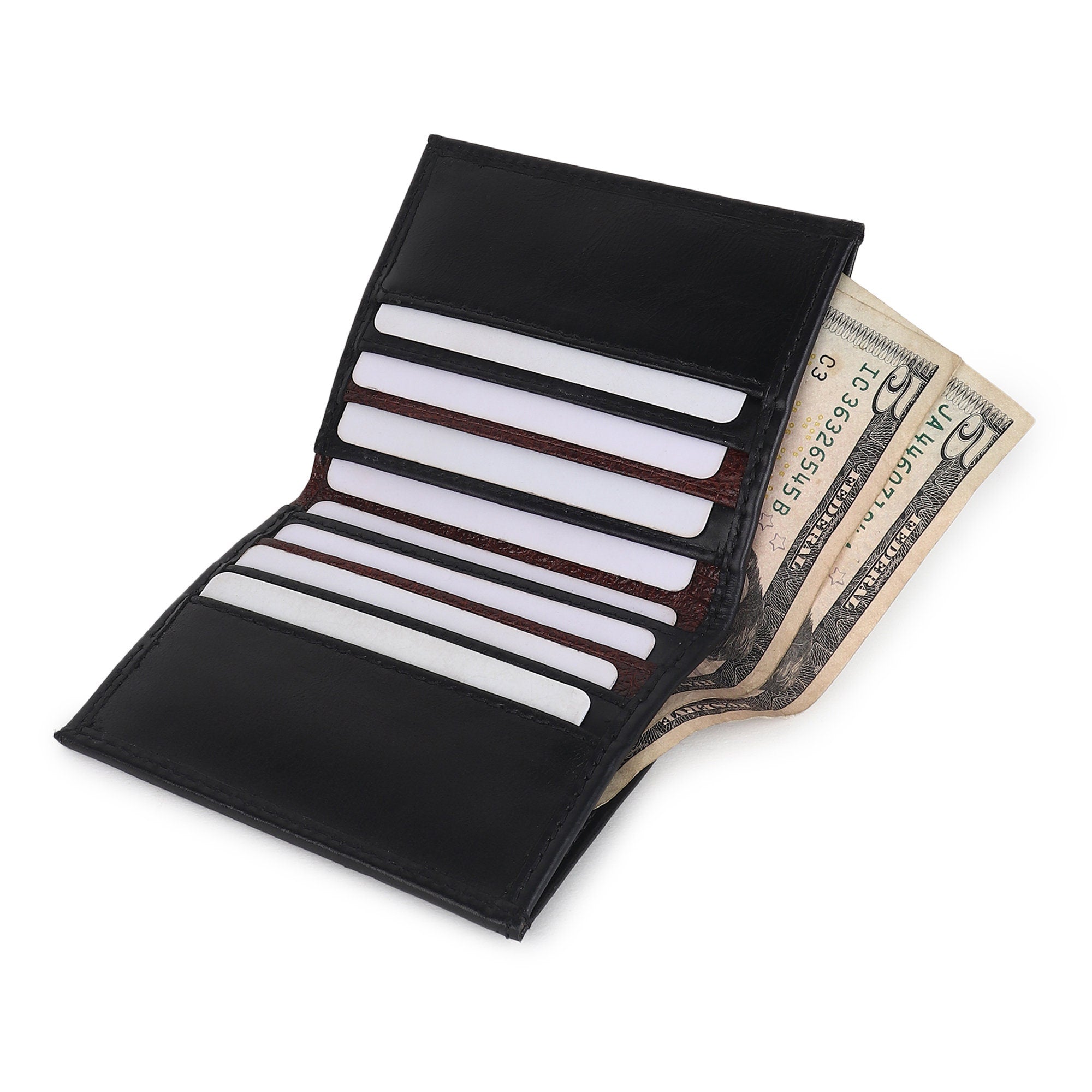 Handmade Real leather Wallet for Men | Personalised Minimalist Real Leather Men's Wallet | Christmas Gift, Birthday, Anniversary Gift Premium Quality Leather: Crafted from high-quality genuine leather, this wallet exudes elegance and durability, ensuring it will stand the test of time. Efficient Card Storage: With the capacity to hold up to 6 cards, this wallet offers a sleek and practical solution for your everyday essentials, including credit cards, ID cards, and more. Spacious Cash Sleeve: Featuring a deep and long cash sleeve, this wallet accommodates bills of various currencies with ease. Say goodbye to the hassle of folding your bills. RFID Blocking Technology: Your personal information is safe and secure with the built-in RFID protection. This advanced feature prevents electronic theft and keeps your sensitive data shielded. Personalized Touch: Make this wallet uniquely yours by adding your name or initials to the outside right bottom corner. It's a thoughtful and personalized detail that sets it apart from the rest. Slim and Stylish Design: Its slim profile fits comfortably in pockets without adding bulk, making it a perfect accessory for the modern man who values both function and style. Ideal Gift for Men: Whether you're buying it for yourself or as a gift for a loved one, this minimalist leather wallet is a versatile and timeless choice. It makes an excellent gift for birthdays, anniversaries, or special occasions. Elevate your daily carry with this minimalist real leather wallet that seamlessly combines functionality, security, and a touch of personalization, making it the perfect accessory for any man.