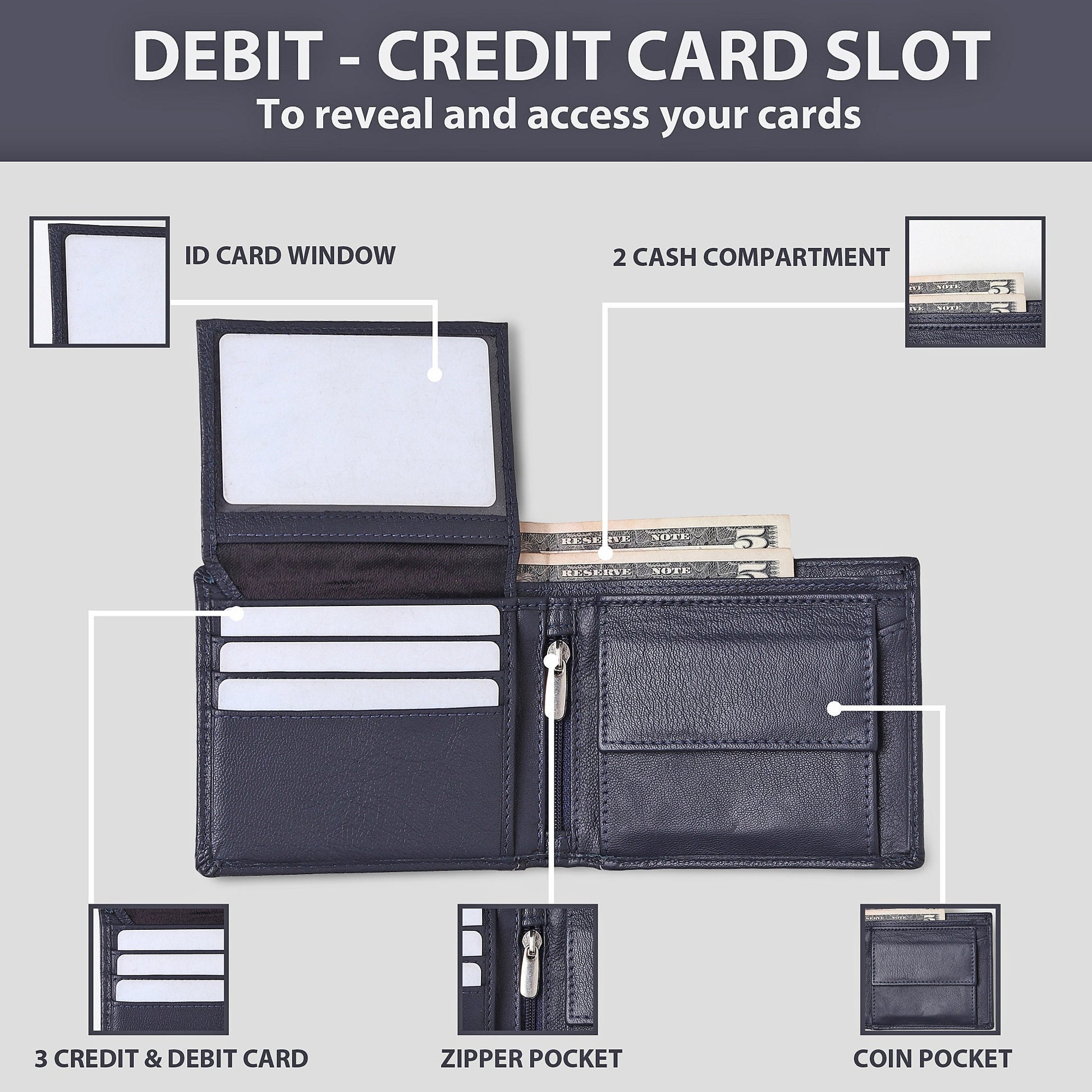 RFID Blocking: Advanced RFID-safe technology protects your cards from unauthorised scans.