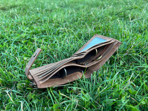 Marks or slight colour variations are natural features of genuine leather. Each wallet is vegetable-tanned and unique, with a subtle vintage character.