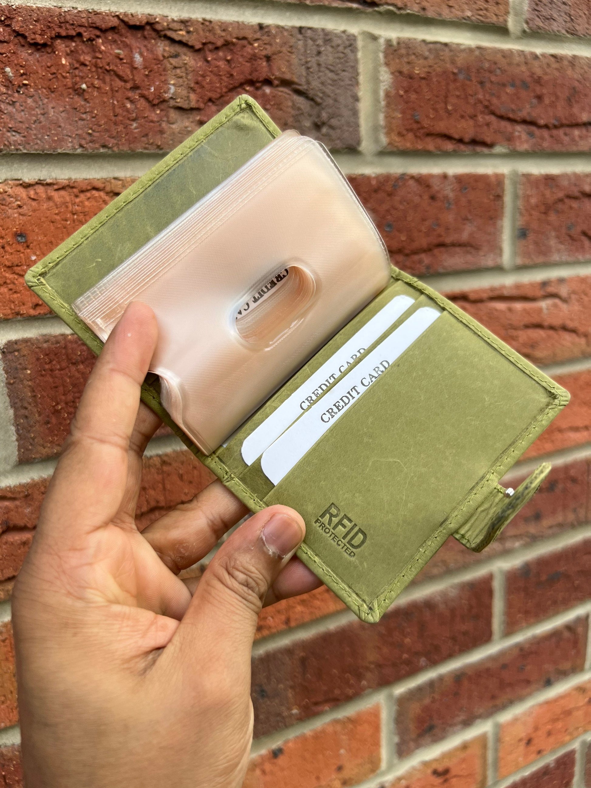 Personalised Green Leather RFID Credit Card Holder Takes upto 18 Cards, Embose Initials/Name, Perfect For Gift