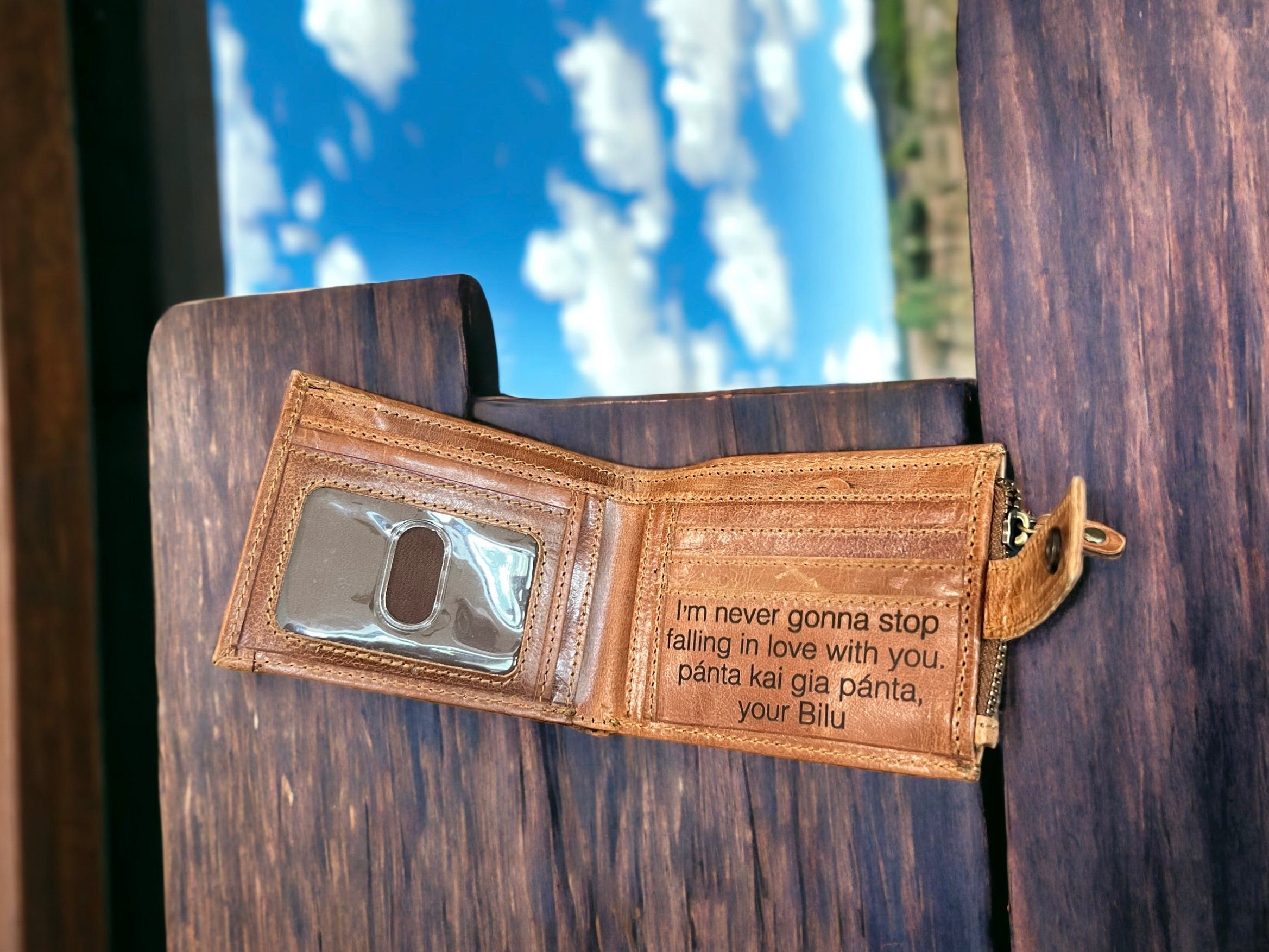 A beautifully handcrafted light brown genuine leather wallet that blends functionality, craftsmanship, and style. With RFID protection, multiple compartments, and custom engraving options, it’s the perfect thoughtful gift for any occasion.