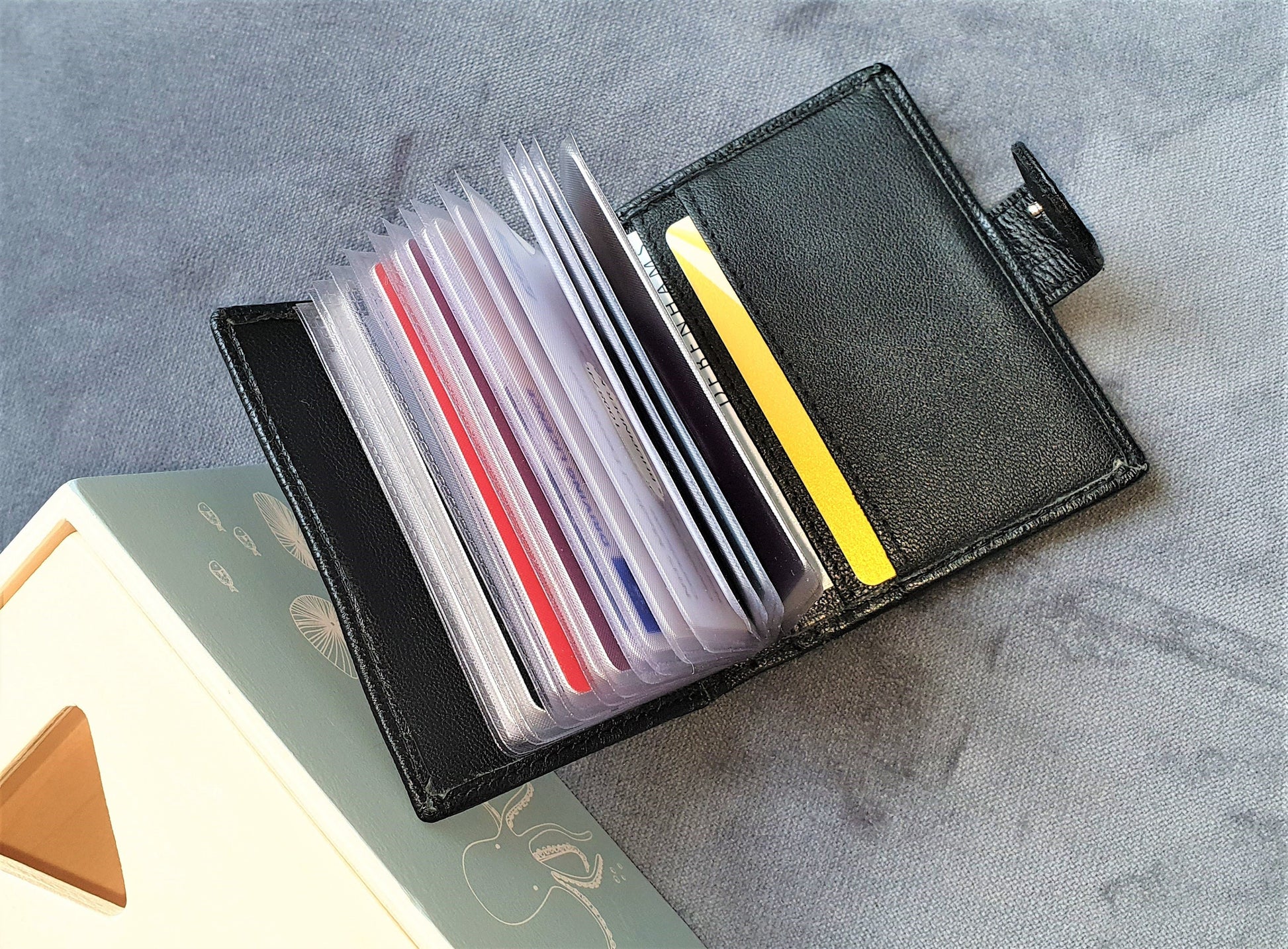 Mens Girls Black Real Leather Credit Card Wallet, Soft Leather Card Holder, Personalized Gift, Christmas Gift Anniversary Gift Birthday Gift
