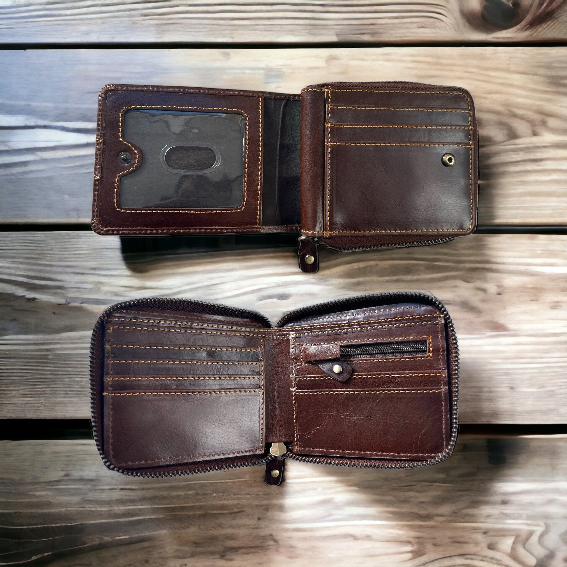 Personalised Men's Wallet | RFID Safe Real Leather Round Zipper Wallet | Unisex Anniversary, Christmas, Birthday Gift, Unique Design Wallet