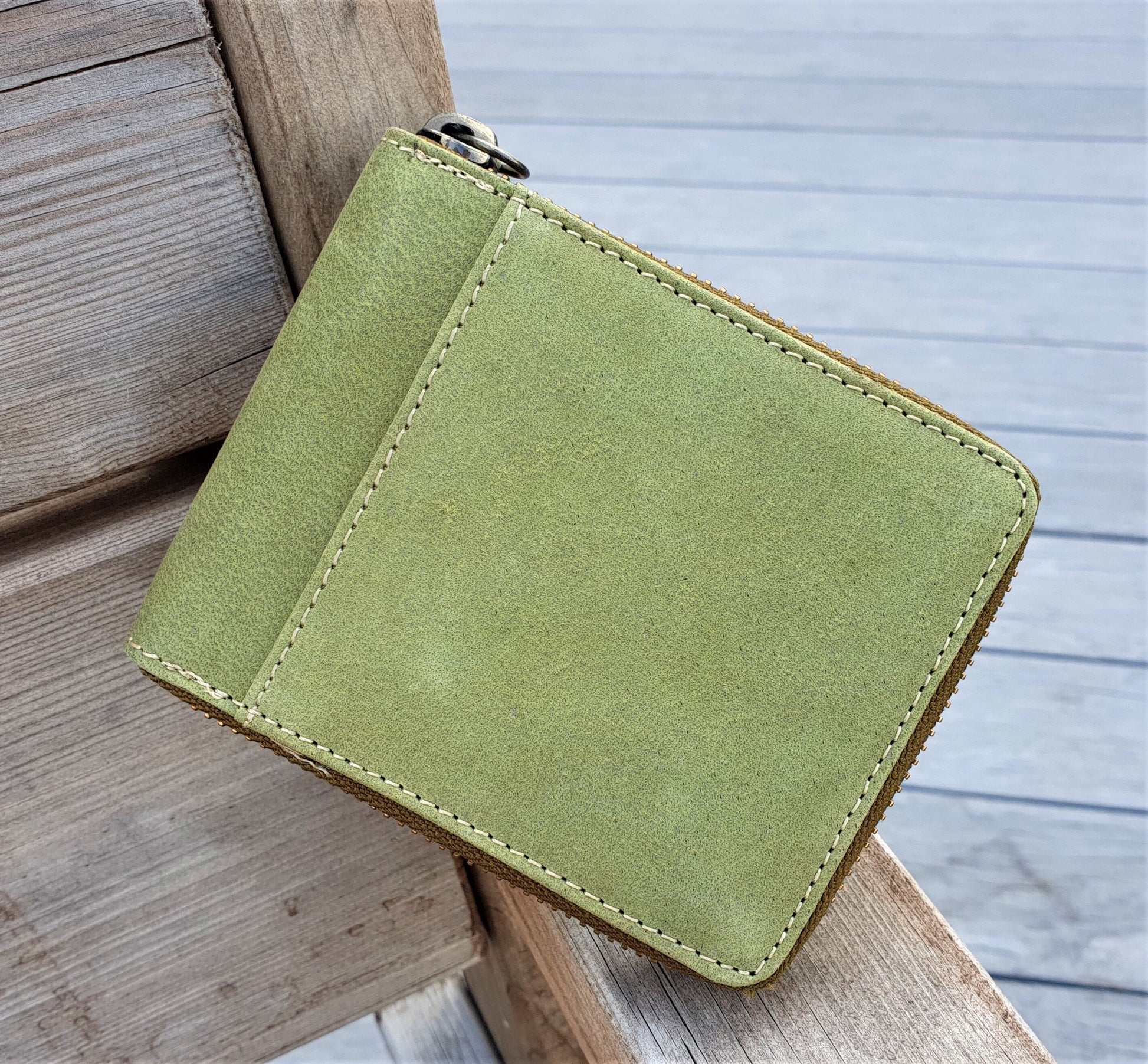 RFID Green Real Leather Mens Women Round Zipper Wallet, Girl's Men's Coin Pocket Wallet Purse Pure Leather Wallet | Handmade Gift Bag Packed